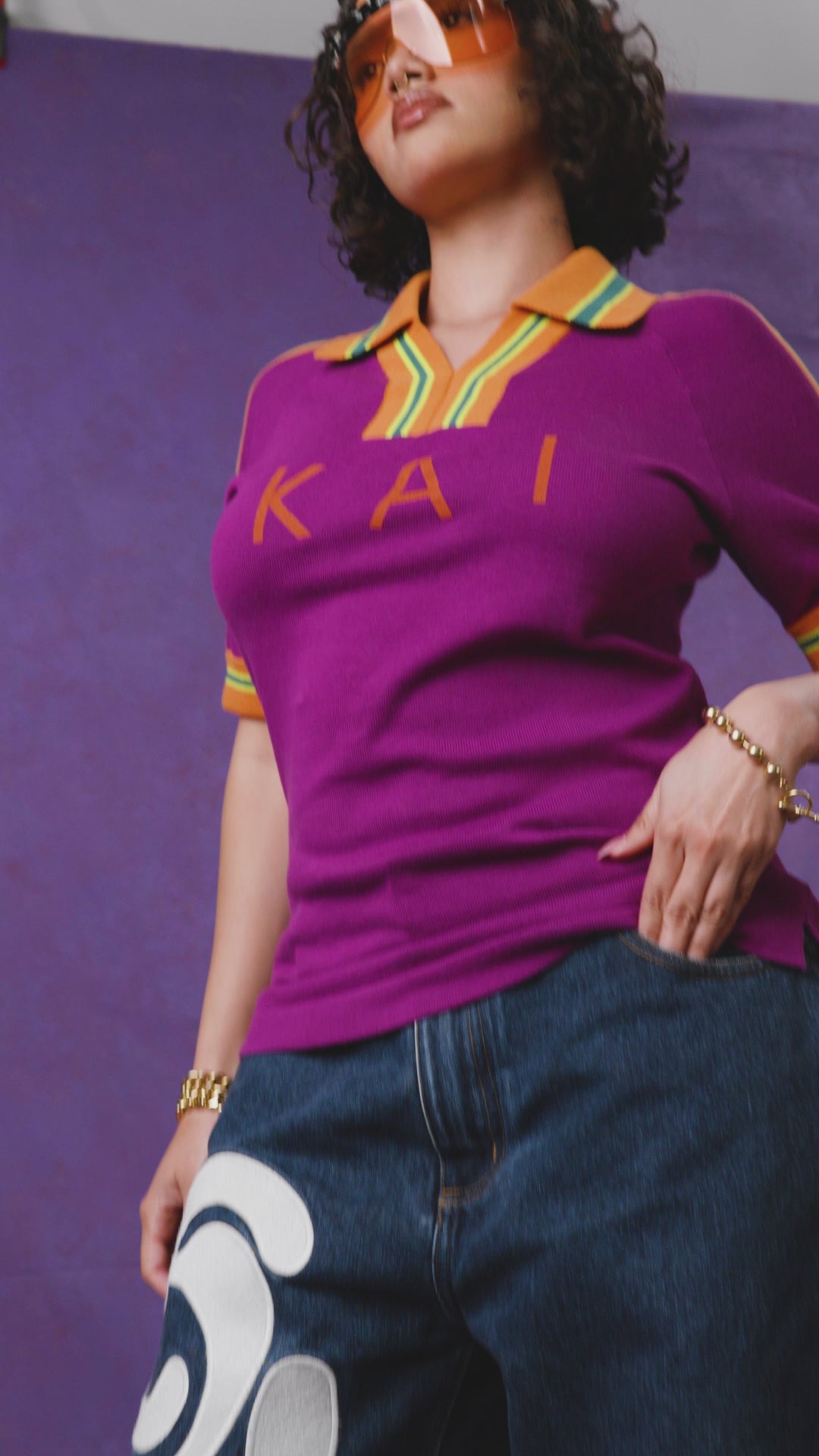 The Mita Jersey is a nod to your fave vintage sport style. This polo tee is crafted for both comfort and statement outfits. Featuring a relaxed fit, striped ribbed collar, and signature "KAI" logo detail, it nails the effortless 'off duty' look perfectly.