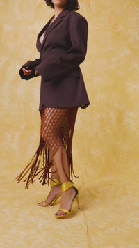 Yumi elevates your look across all the seasons. Crafted from a precise laser cut faux suede and ready to be styled in a multitude of ways. Style with your favourite corset, office shirt or even under jeans with an oversized coat on top.