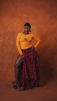 Nao Cotton Logo Embroidered Long Sleeve Top - Orange
